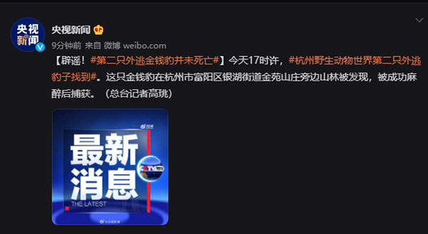 5月8日下午,@央視新聞 發布辟謠信息:第二只外逃金錢豹并未死亡。