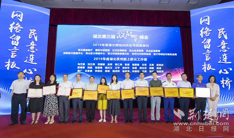 2019年度“湖北網(wǎng)絡(luò)問(wèn)政優(yōu)秀回復(fù)單位”和“優(yōu)秀網(wǎng)上群眾工作者”接受頒獎(jiǎng)。記者劉建維 攝