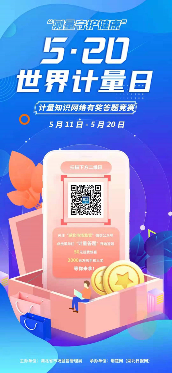 今年5月20日是第22個“世界計量日”。為普及計量知識,進一步提升社會公眾對計量工作的認知和了解,5月11日,由湖北省市場監督管理局主辦、荊楚網承辦的計量知識網絡答題競賽活動正式啟動。