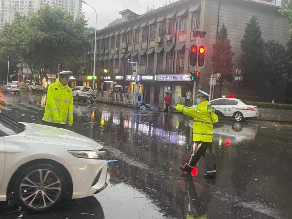 應對雷雨大風天氣,光谷交警迅速啟動惡劣天氣應急預案,全警上路,加大執勤巡邏力度,強化對易積水重點路段和車流量較大路口的管控力度,路面執勤民警在做好路面管控的同時,為受困車輛、群眾提供救助,有效避免了道路交通擁堵和交通事故的發生。(通訊員段菲 詹曉靜 長江日報記者楊濤 攝影報道)