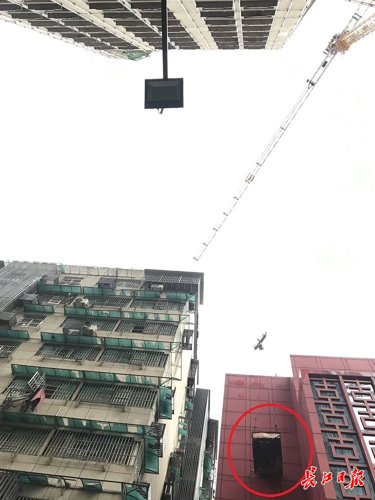 長江日報5月10日訊 5月10日下午,狂風暴雨大作,江岸區黃石路與吉慶街交會處的老通城文化風情街工地,高空塔吊下的運送斗偏移方向,打在旁邊一戶居民樓的陽臺晾衣架上,后懸掛于避風的兩棟樓房之間。記者到現場時四周已拉上警戒線,工作人員正在操作塔吊,準備將運送斗放至地面安全位置。(長江日報記者周超 攝影報道)