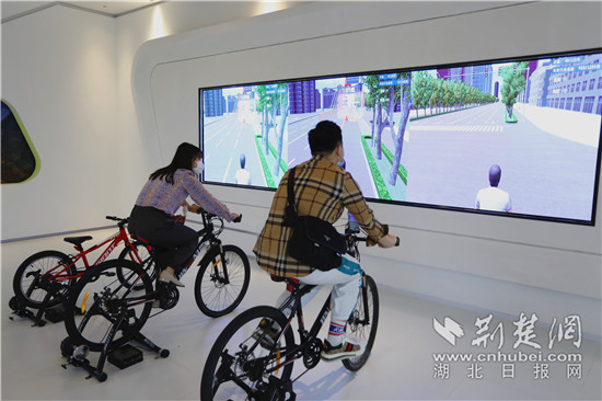 現(xiàn)場(chǎng)參觀者在交通安全區(qū)進(jìn)行騎行體驗(yàn)。記者張城攝