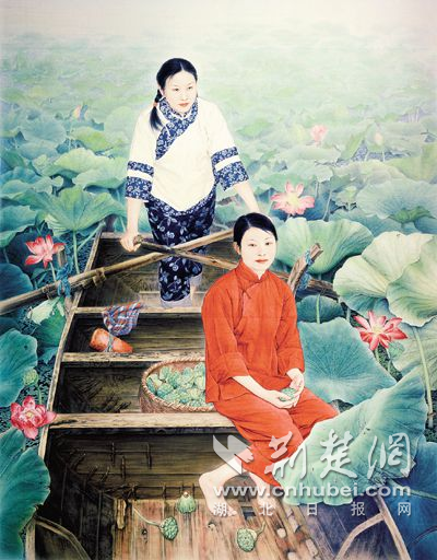 秉承傳統,融合中西的創新之路,緣于堅持“可貴者膽,所要者魂”的精神,緣于李乃蔚“如朝圣一般的十年如一日的耐心描繪”。李乃蔚向網友介紹,他的工筆人物畫創作,往往都會耗費一兩年的時間,其作品《紅蓮》的創作時間跨度更是長達六年之久,其中,每天都在作畫的時間累計起來有四年,平均每天工作近十個小時。