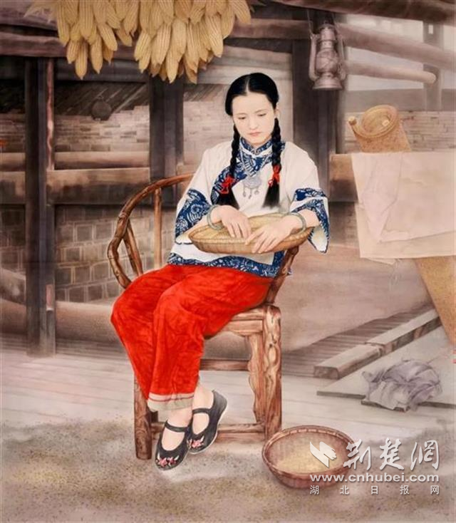“一位清秀的土家姑娘,她手拿山菊,靜靠山石,凝望遠方,那明快、清麗的畫面,讓觀者如飲佳釀。”1997年,工筆畫作品《山菊》讓李乃蔚在畫壇“破繭”而出,一鳴驚人,一舉奪得“全國中國畫人物畫展覽”銀獎(最高獎)。然而,對李乃蔚而言,這只是他向極致寫實探索的第一步。