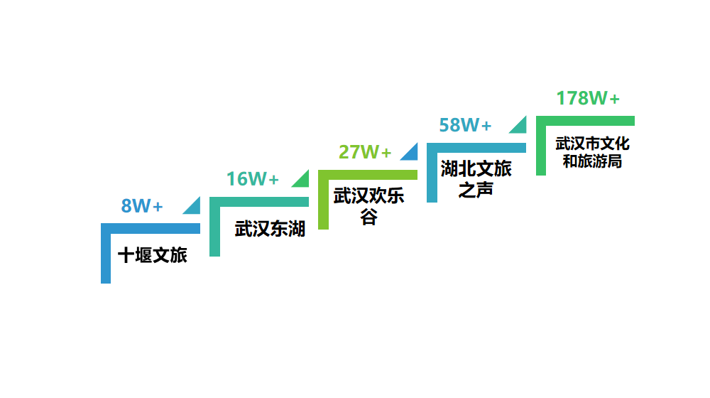 從文章閱讀總數來看,“武漢市文化和旅游局”該項指標為178萬+,較3月減少了42萬+;“湖北文旅之聲”繼續保持增長勢頭,本月增長4萬+;“武漢歡樂谷”本期閱讀量16萬+(上期15萬+),“武漢東湖”本期閱讀量16萬+(上期29萬+)。總的來說,本期前四名都超過10萬,第五名“十堰文旅”不到10萬,這和上期基本一致。