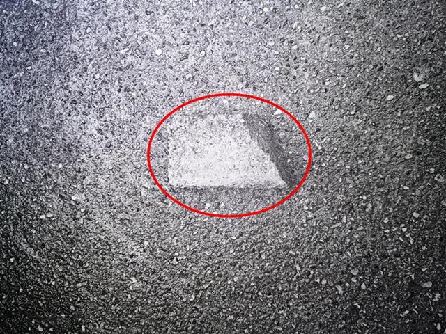王先生調閱自己商鋪門口安裝的視頻監控發現,10月30日晚上9點多鐘,從商鋪所在的住宅樓上方飛下來了一塊磚頭,正好砸在了自己的車上。