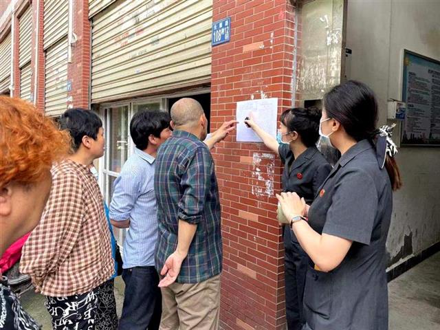 考慮到只采取打電話通知當事人的方式效率低下,李曉丹決定到案發現場走一趟。4月30日下午,李曉丹和同事一行八人來到案發小區張貼法院開庭公告,逐家逐戶開展送達工作。