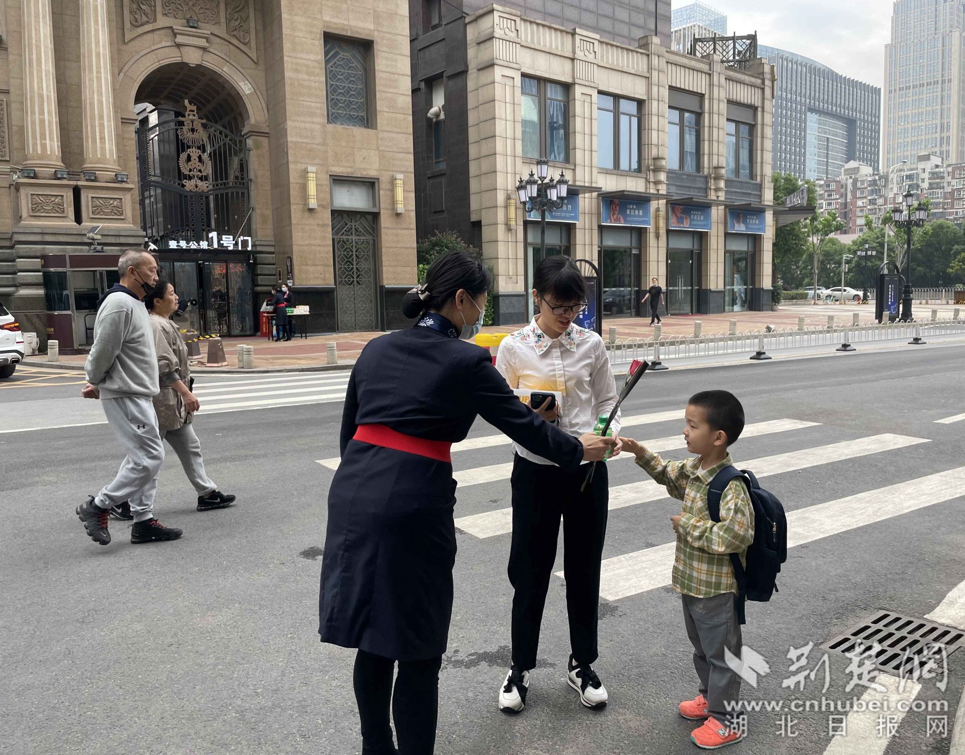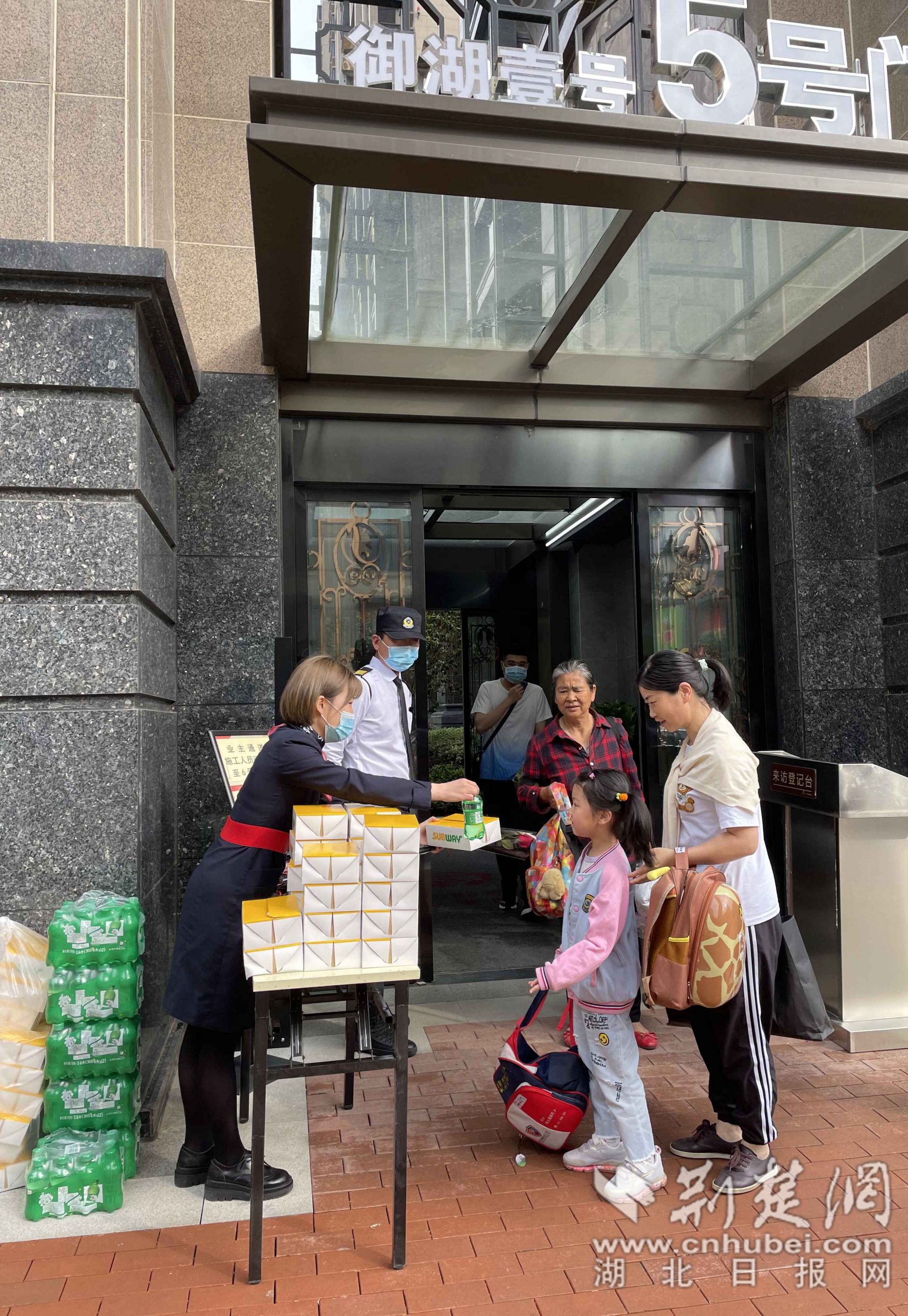 圖為5月20日,深圳市萬象美物業(yè)武漢分公司物業(yè)工作人員向業(yè)主贈送玫瑰、紙巾等物品。