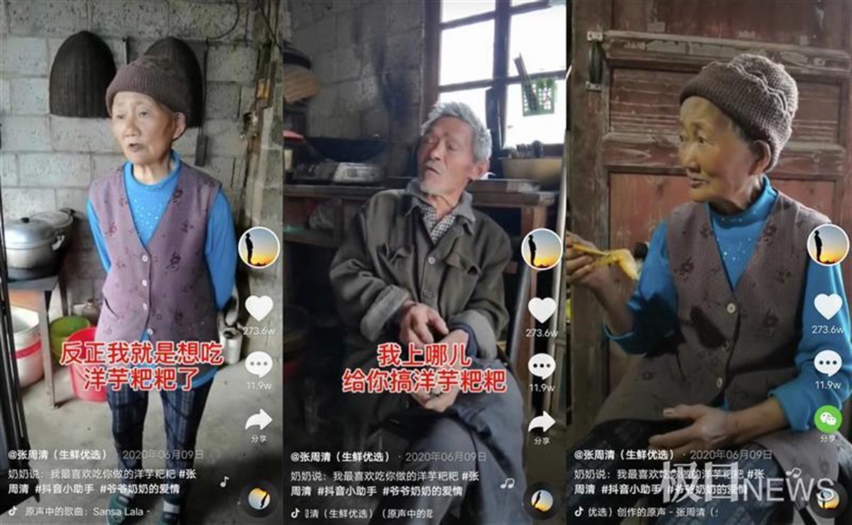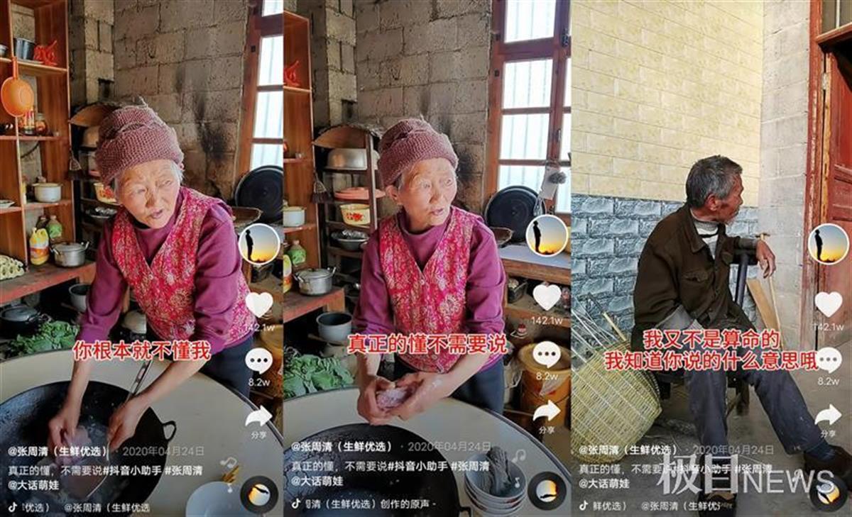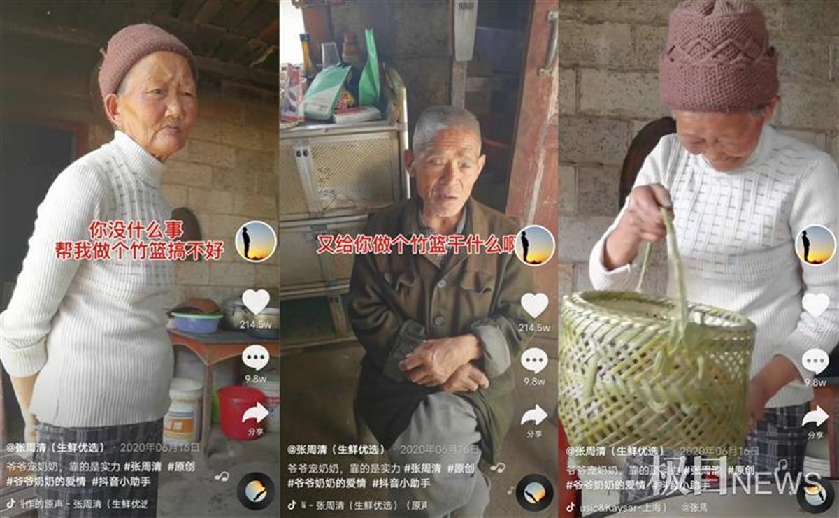 張周清在抖音上真正出圈,是2020年4月份。他把鏡頭對準了爺爺奶奶。爺爺奶奶也一直務農,年過70之后,感情依然很好,常像年輕人一樣拌嘴。當時,奶奶正在廚房忙活,爺爺在院子里編竹籃。奶奶對爺爺喊:“你根本就不懂我。”