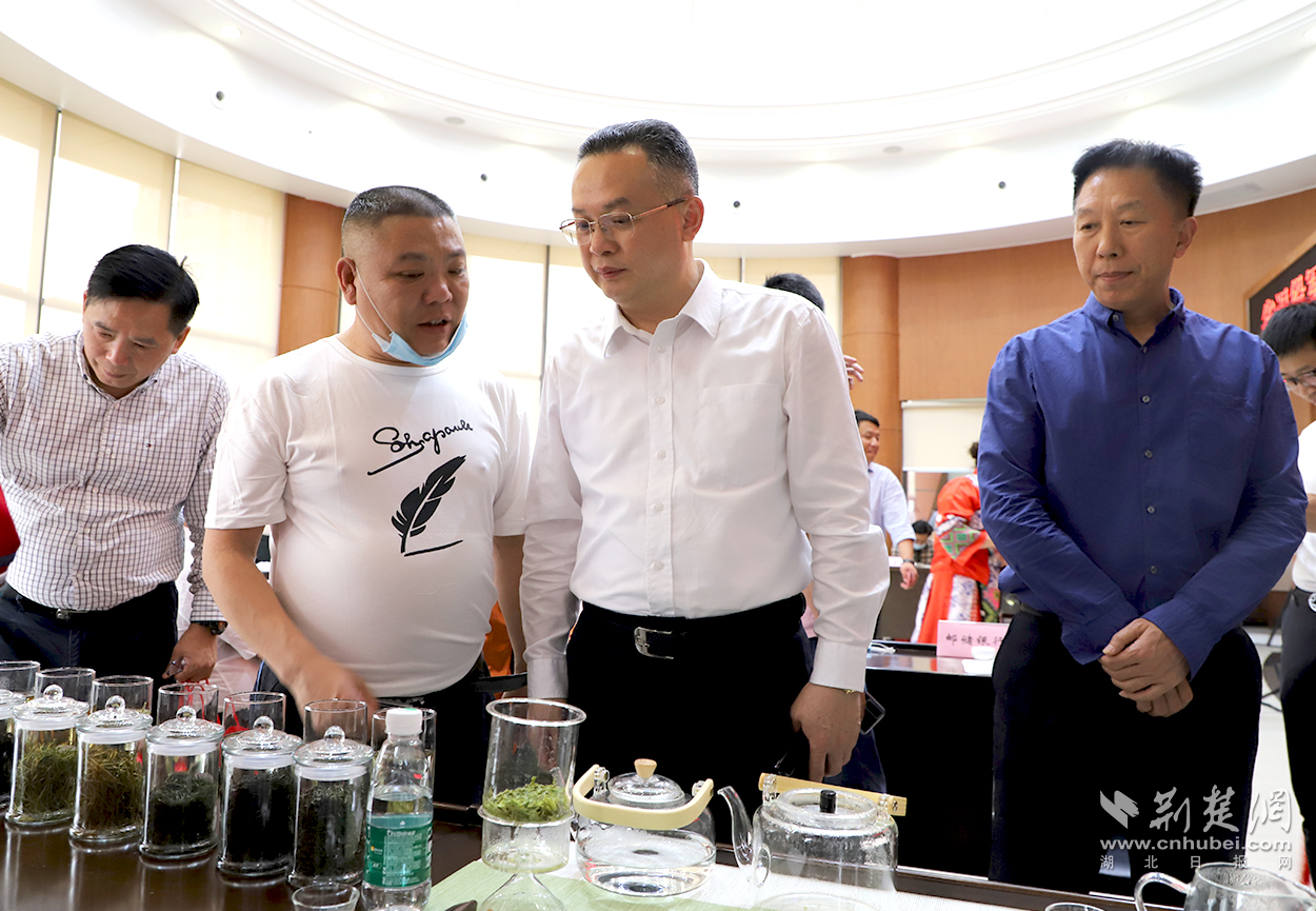 龍家界村村委會(huì)書記楊勝華向周振武介紹茶葉等農(nóng)副產(chǎn)品。高松 攝