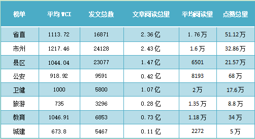 “十佳”省直微信2020年平均WCI為1113.72,累計發布文章16871篇,每個公眾號日均發布量約5篇;年度所有文章閱讀量累計達2.36億次,累計獲得點贊數為51.12萬,文章平均閱讀量為 1.76萬次。