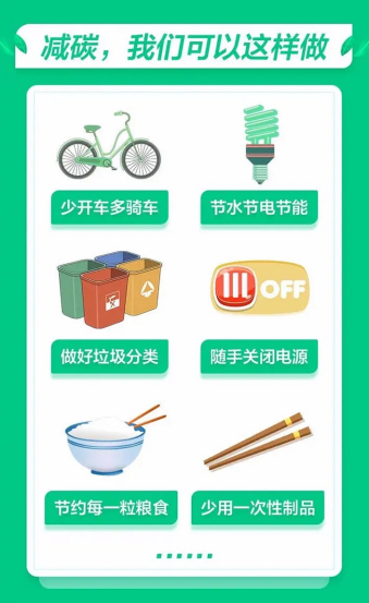 一點點微不足道的改變,積少成多時也會成為節能減排的活力源泉。當綠色低碳生活在全社會蔚然成風時,碳達峰碳中和目標肯定可以實現。