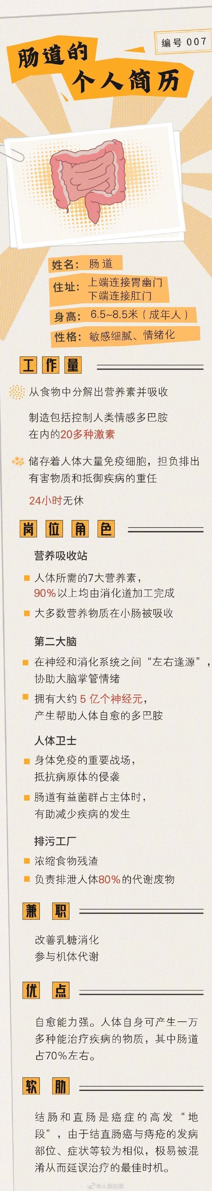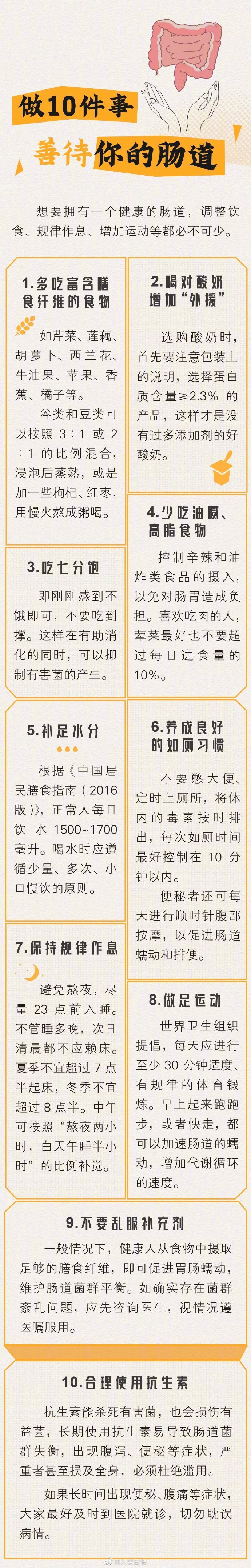 腸道是人體重要的消化器官,不僅掌管營養物質的吸收,還肩負著阻擋細菌和廢物進入人體的職責。它擁有豐富的神經細胞,能夠自主判斷,向身體發號施令。同時它對外界刺激十分敏感,暴飲暴食、精神緊張等都會使腸道產生“情緒化”反應,進而影響消化系統,出現腹瀉、惡心、嘔吐等不適癥狀。今天是世界腸道日,做10件事善待你的腸道。