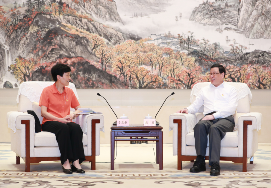 應勇與黨史學習教育中央第四指導組組長于躍敏座談
