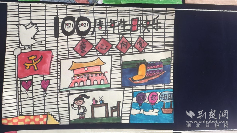 此外,保康小學還舉辦了《百年黨史潤童心》慶六一書畫展,為中國共產黨的百歲生日送上美好祝福。孩子們用稚嫩而真摯的筆觸表達對黨的熱愛和禮贊,用天真絢麗的畫面描繪生活的美好。