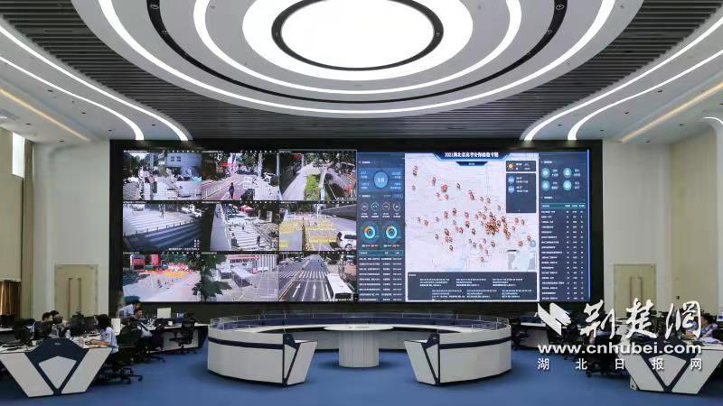6月7日上午10時許,湖北省公安廳新指揮中心大廳,全省高考安保視頻調度會正在進行,武漢、襄陽、孝感等地公安機關負責人通過視頻匯報安保工作開展情況,碩大的顯示屏上,考點信息、警力數及周邊現場視頻一屏展現、一目了然。