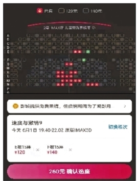 《速度與激情9》正在上映,很久未去影院的小李打算去UME華星影院的IMAX廳過把癮,買票時卻發現,同一影院不同區域票價差了20元,“中間偏后的位置140元一張,前五排以及靠兩邊的位置則120元一張”??紤]到影片是3D模式,位置不好會影響觀影效果,小李還是買了中間區域的位置,但心里多少有點不樂意。