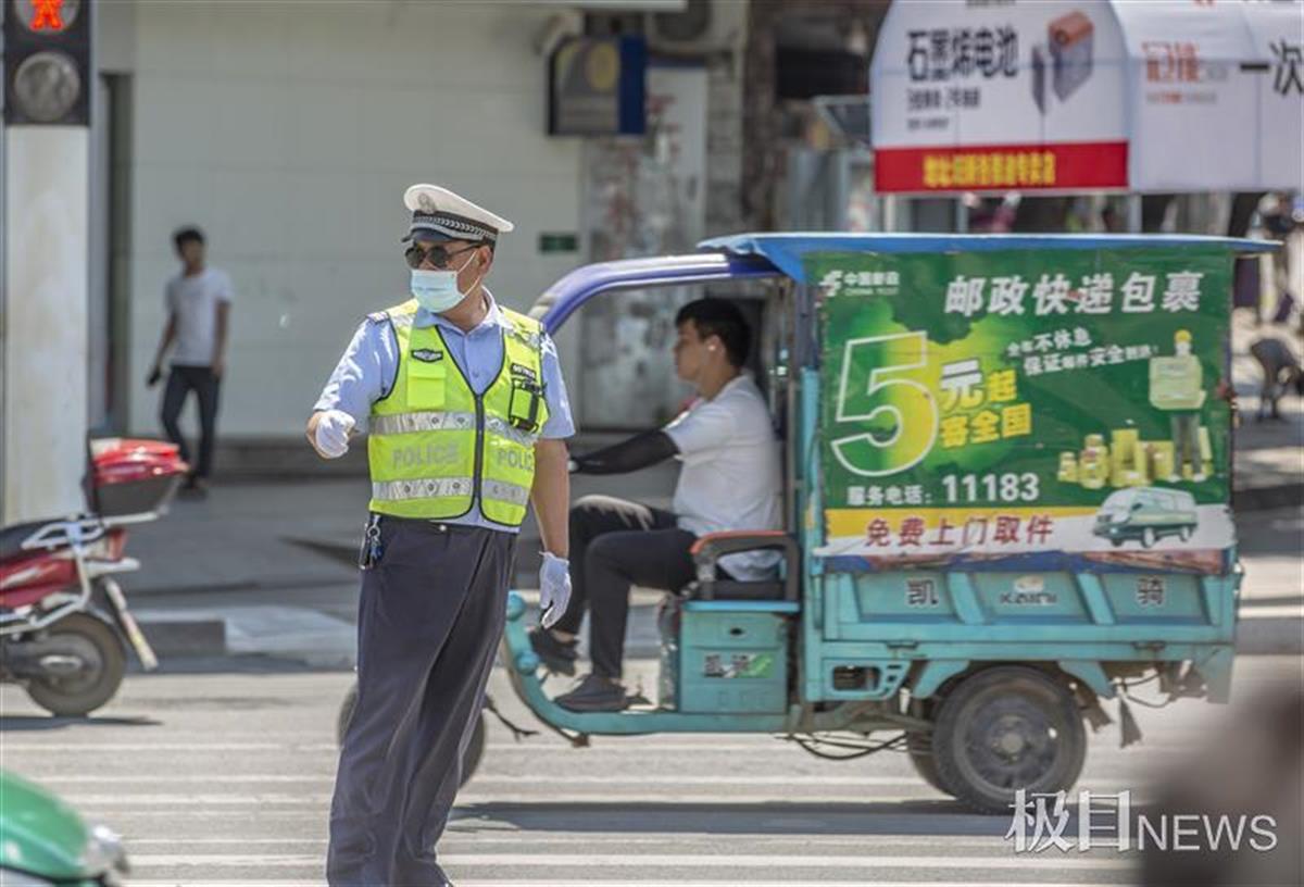 陽新縣公安局交警大隊(duì)民警胡世平,今年已59歲,到明年6月,就是光榮退休的年齡,而在烈日下的高考安保執(zhí)勤點(diǎn),他戴著太陽鏡挺直身板指揮交通的樣子,絲毫不亞于年輕民警的氣勢。