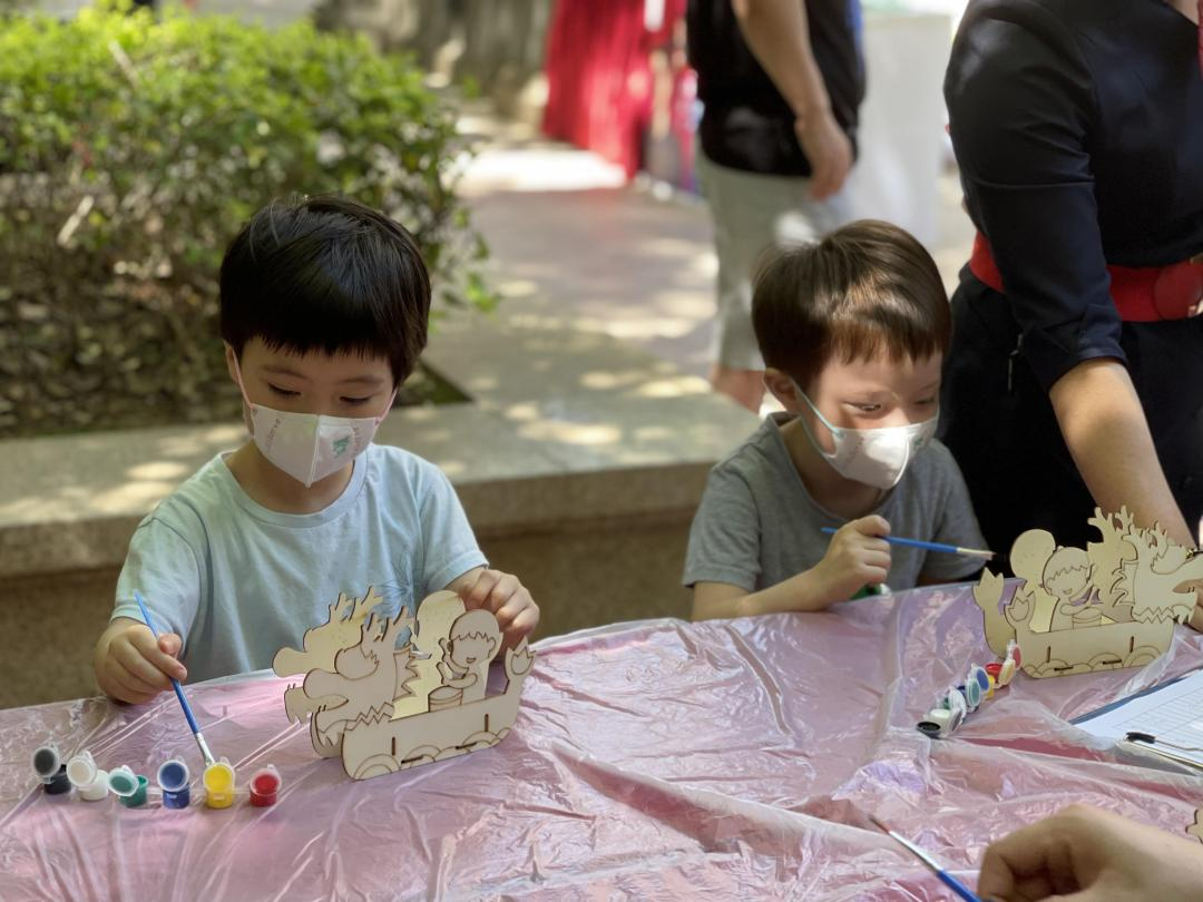 小朋友們聚精會(huì)神DIY手工制作龍舟