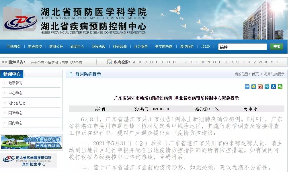 來源:湖北省疾病預防控制中心官網