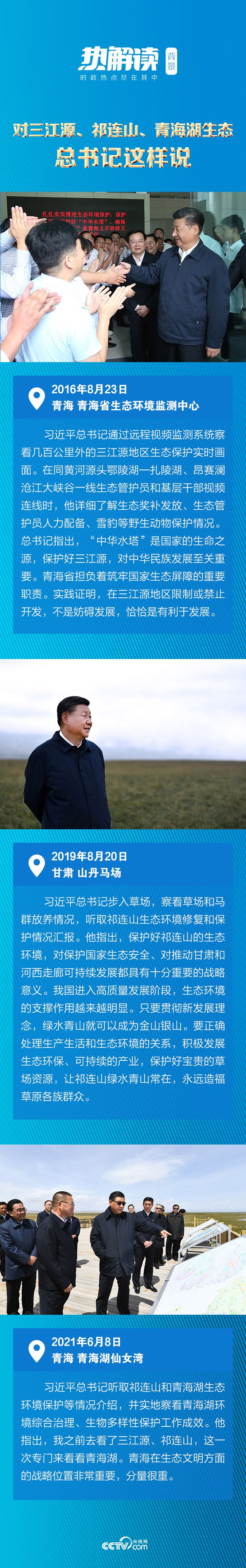 駐足于青海湖沿湖修建的木質(zhì)棧道上,總書記指出,我之前去看了三江源、祁連山,這一次專門來看看青海湖,并深情囑托:“要把青海生態(tài)文明建設(shè)好、生態(tài)資源保護(hù)好,把國(guó)家生態(tài)戰(zhàn)略落實(shí)好、國(guó)家公園建設(shè)好。”