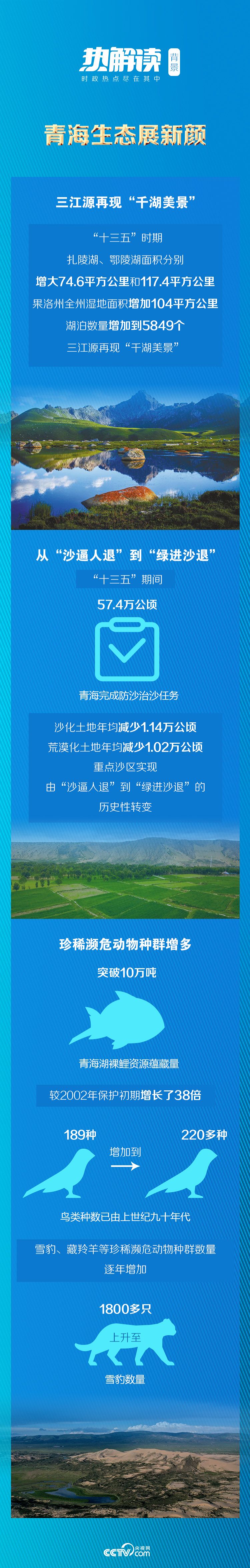 近年來,從青海湖裸鯉資源瀕臨枯竭到“魚翔淺底”,從旗艦物種普氏原羚瀕臨滅絕到種群不斷擴(kuò)大,從面積持續(xù)縮小被擔(dān)憂會(huì)成為第二個(gè)羅布泊,到水位連漲、大湖“王者歸來”……“高原藍(lán)寶石”青海湖正在展現(xiàn)出動(dòng)人的自然之美,周邊生態(tài)環(huán)境不斷向好,生物多樣性日益豐富。