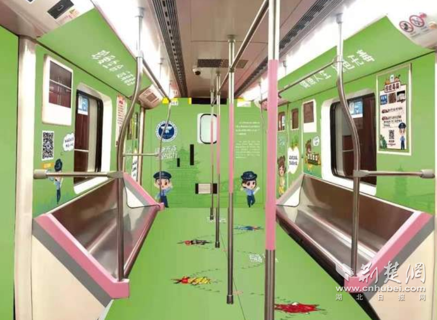 據了解,武漢地鐵“禁毒主題專列”,全列共6節車廂,以“青草綠”為主色調,通過喜聞樂見的原創漫畫形象,生動活潑的圖解禁毒知識,讓乘坐地鐵的市民在輕松氛圍中接受禁毒教育,以“接地氣”的方式,呼吁群眾保持文明健康的生活方式,傳播“健康無毒,綠色出行”的禁毒理念,達到潤物無聲的效果。