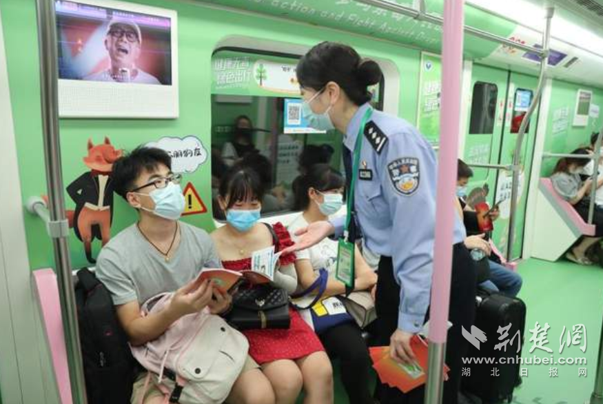 來自貴陽的吳先生和女友第一次來漢旅游,一下飛機就趕上了這班地鐵,他覺得在地鐵上開展沉浸式的禁毒知識科普很有意義,讓旅客利用碎片化的時間增加了自我保護意識和能力,并表示會向身邊的家人和朋友傳播禁毒防毒理念。