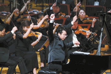 《東方紅》《義勇軍進(jìn)行曲》的旋律交織隱現(xiàn),28聲鑼響激蕩,仿佛回響在開(kāi)國(guó)大典上的28聲禮炮余音不絕。在藝術(shù)總監(jiān)李飚的執(zhí)棒下,北京交響樂(lè)團(tuán)與鋼琴家孫穎迪用奔流的音樂(lè)為觀眾展開(kāi)了歷史的畫(huà)卷……為慶祝建黨百年,北京交響樂(lè)團(tuán)“恢弘的頌歌”音樂(lè)會(huì)在中山公園音樂(lè)堂上演,樂(lè)團(tuán)委約青年作曲家蔡?hào)|真創(chuàng)作的鋼琴協(xié)奏曲《北京頌歌》在本場(chǎng)音樂(lè)會(huì)上迎來(lái)了世界首演。