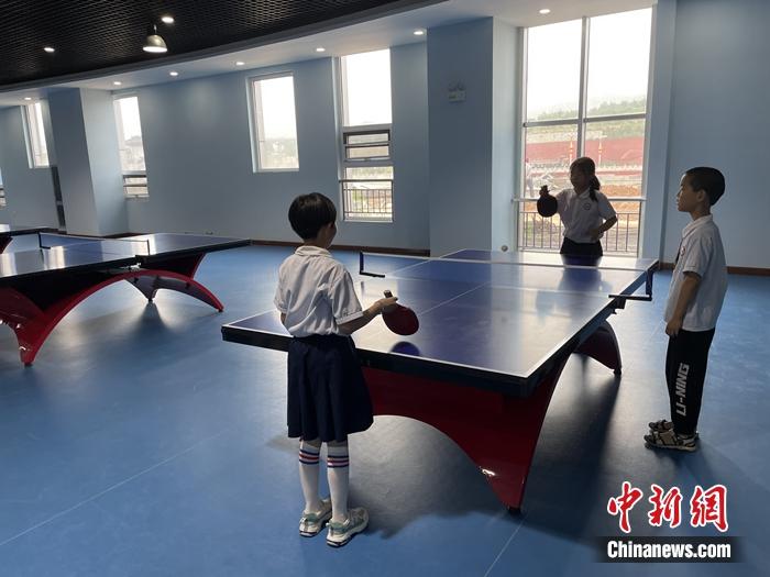 村里小孩在體育館內(nèi)打乒乓球。中新網(wǎng)記者 吳濤 攝