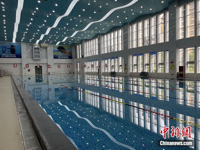 白沙村體育館內(nèi)的成人游泳館,體育館內(nèi)還有兒童游泳館。中新網(wǎng)記者 吳濤 攝