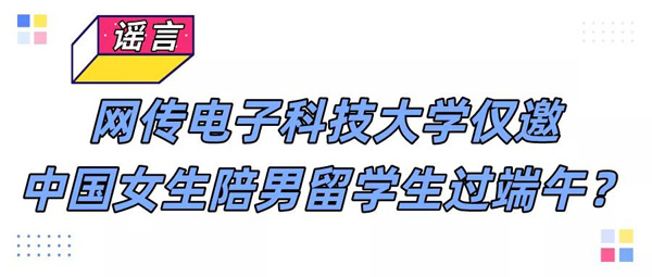 針對此情況,2021年6月16日,電子科技大學國際教育學院院長通過極目新聞辟謠稱:部分網友及自媒體發布的內容嚴重歪曲事實,校內男女生均報名參加了此次活動,我們已發布關于此次活動的相關報道。