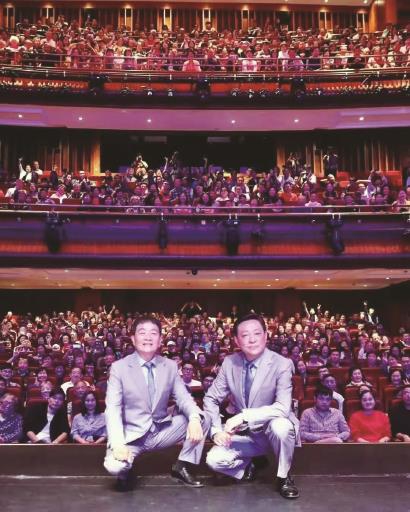 昨晚,站在文化廣場的舞臺上,面對臺底下黑壓壓的觀眾,上海獨(dú)腳戲名家毛猛達(dá)深深一躬,起身的那一刻,他突然有些晃份:《石庫門的笑聲》真的已經(jīng)演了100場了?已經(jīng)有7.5萬人次的觀眾買票觀看我們的獨(dú)腳戲?qū)隽??如潮的掌聲、洶涌的喝彩聲,一下把毛猛達(dá)拉回現(xiàn)實(shí):是的,從2018年9月至今,《石庫門的笑聲》扎扎實(shí)實(shí)駐演了100場,就憑著自己和搭檔沈榮海的兩張嘴,創(chuàng)造了上海獨(dú)腳戲?qū)鲅莩鍪飞系囊淮笃孥E!