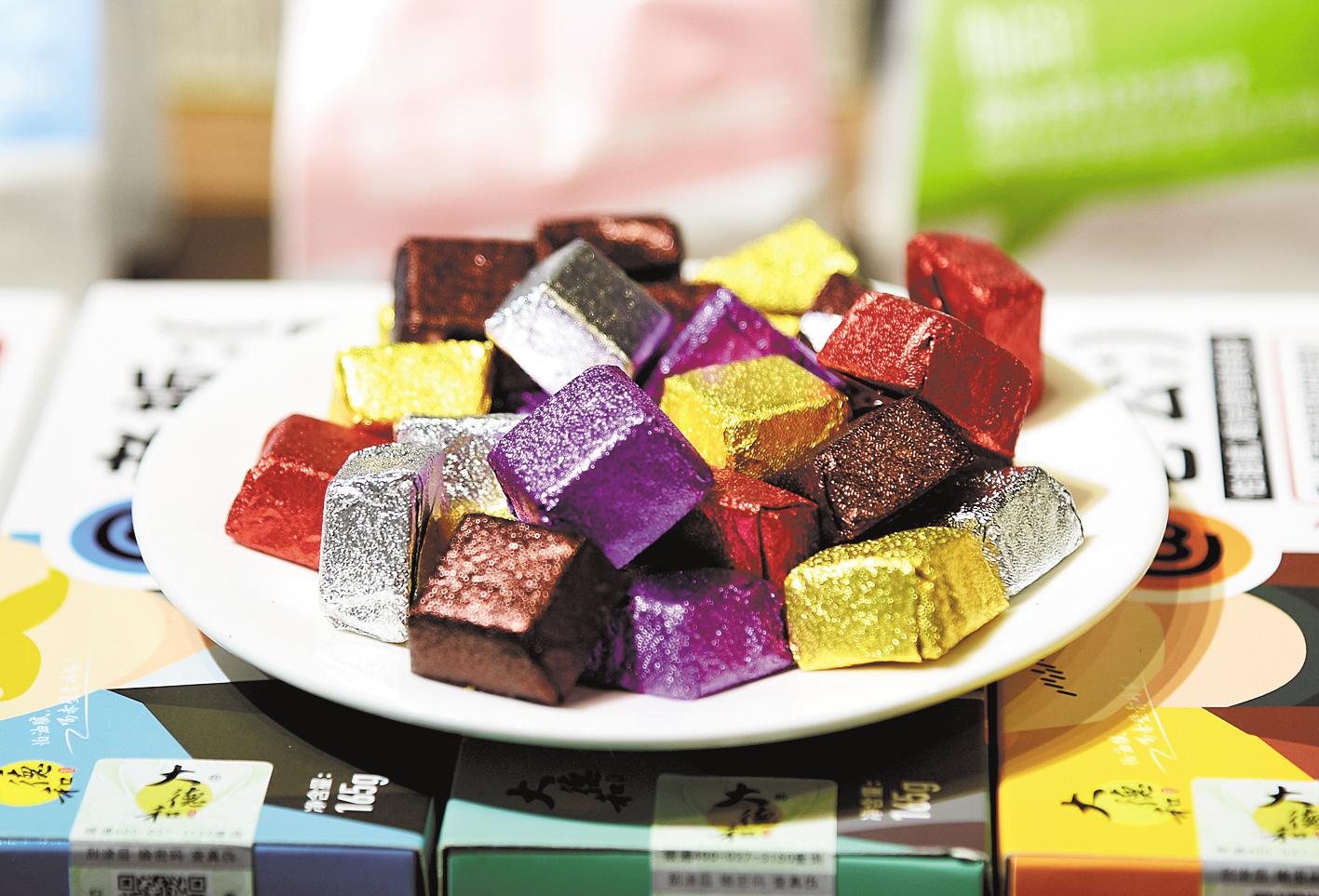 大德和還推出針對年輕人8大系列20多款產品,主打“怕油膩,喝赤壁青磚茶”。有“在路上的茶”,拆袋即泡飲;有@閨蜜、@老鐵、@老公等外觀時尚的茶,送親友都十分俏皮……琳瑯滿目的產品,讓300多歲的青磚茶煥發青春。肖亞松拿起一塊彩色錫紙包裝的小顆粒,外觀就像巧克力:“傳統青磚茶已瘦成一道‘閃電’,看似是體積變小,實則是工藝革新,每塊小顆粒的茶梗、茶葉配比,都嚴格把控。”