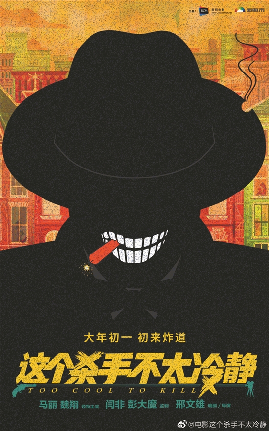 定檔海報中,大面積的黑色元素勾勒出一個頭戴禮帽 的“殺手” 剪影,壓迫感撲面而來。海報中央這位“殺手”兩排整齊的牙齒叼著一根點燃的鞭炮嘴角上揚,暗自微笑。