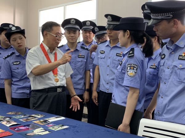 老黨員回憶開發(fā)區(qū)公安的奮斗歷程,給青年民警講黨課。記者 尹勤兵 攝