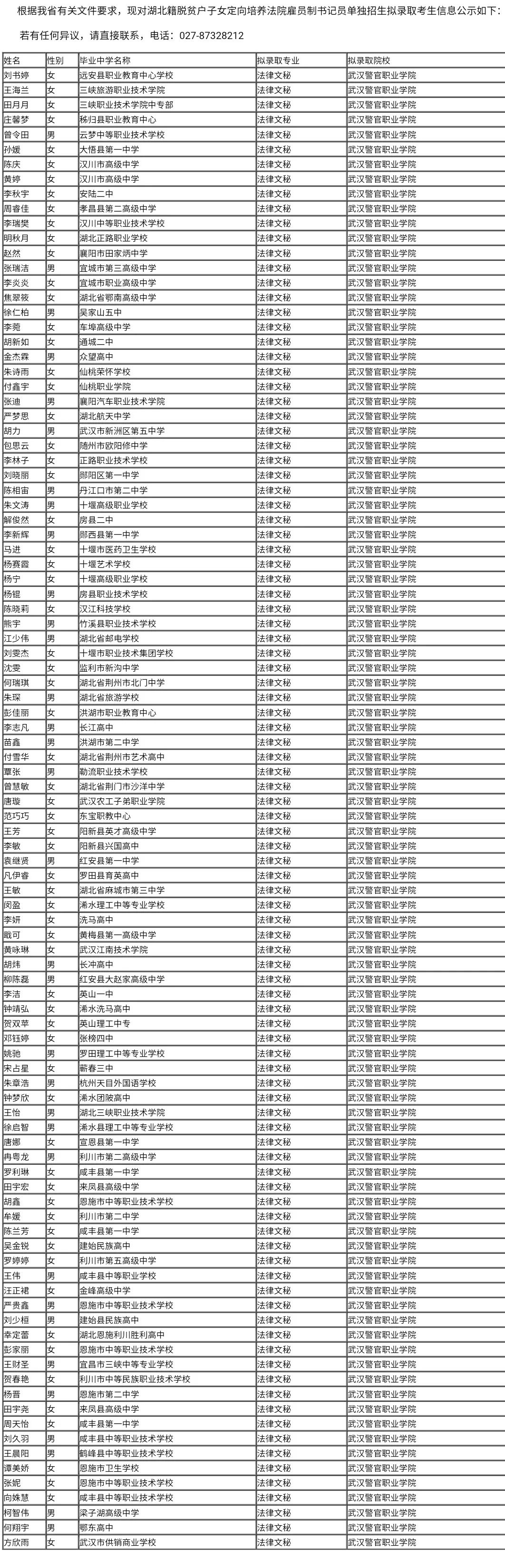 報名期屆滿后,經過嚴格的資格審查、筆試、面試,依據(jù)錄取順序,6月24日湖北招生信息網對擬錄取名單予以了公示。
