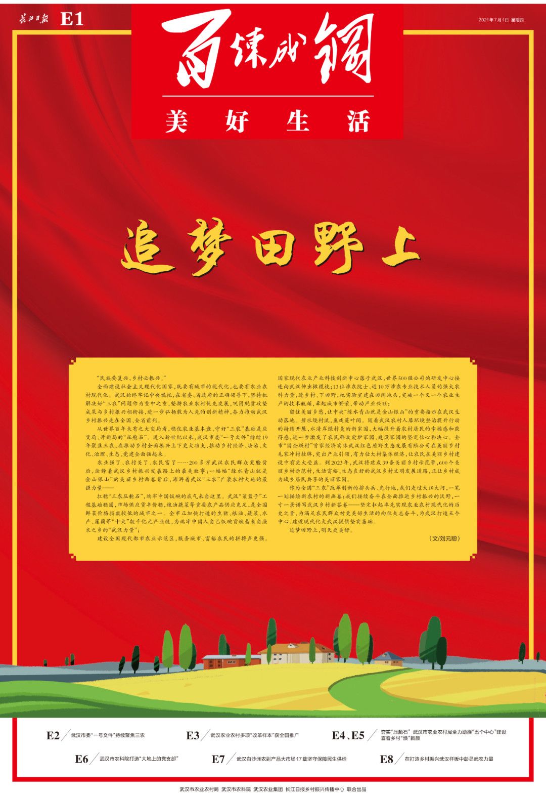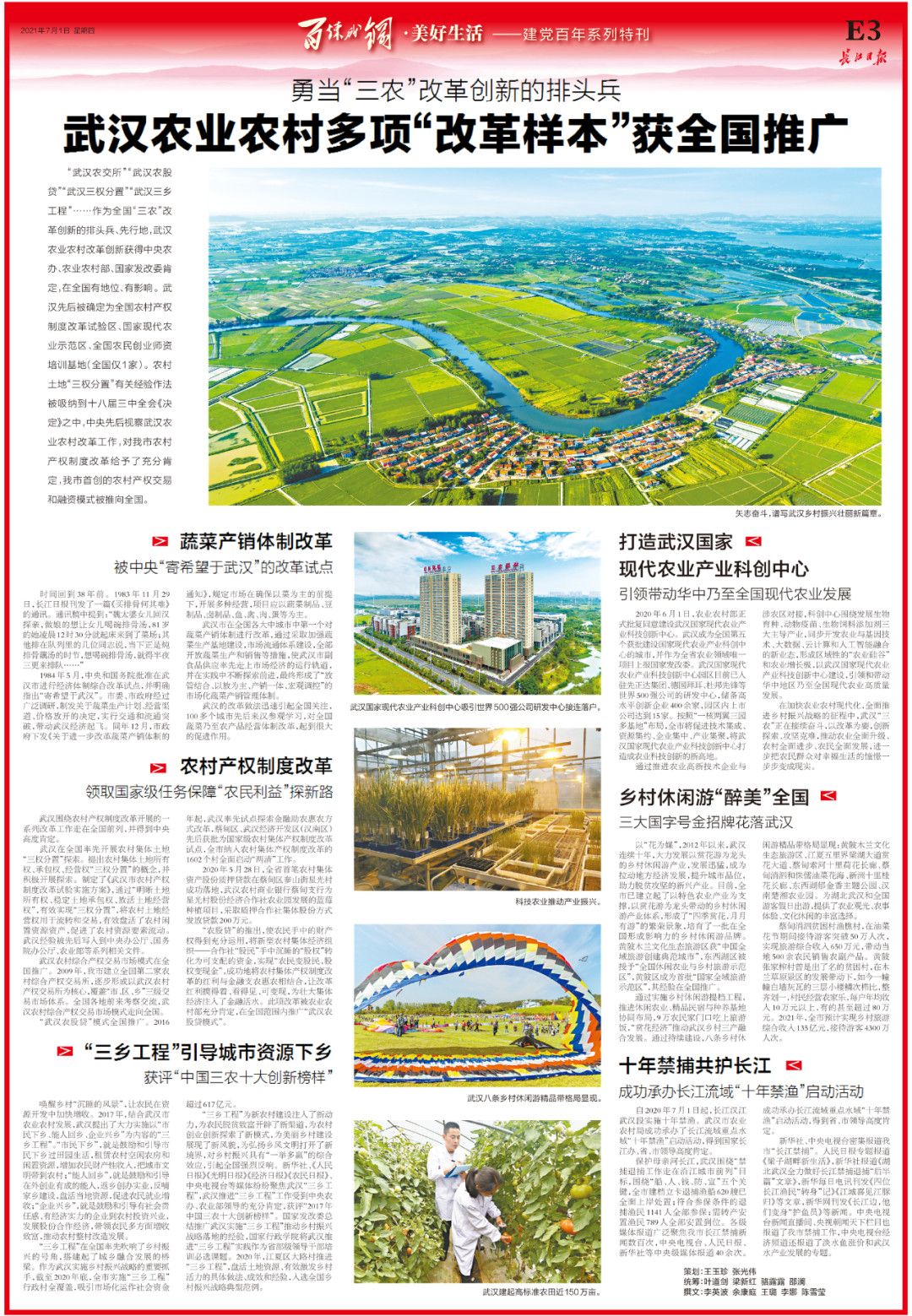 扛穩“三農壓艙石”,建設全國現代都市農業示范區,留住美麗鄉愁。作為全國“三農”改革創新的排頭兵、先行地,武漢正接續奮斗在全面推進鄉村振興的沃野,一寸一景譜寫武漢鄉村新答卷:為滿足農民群眾對更美好生活的向往矢志奮斗,為武漢打造五個中心、建設現代化大武漢提供堅實基礎,奮力推動武漢鄉村振興走在全國、全省前列。