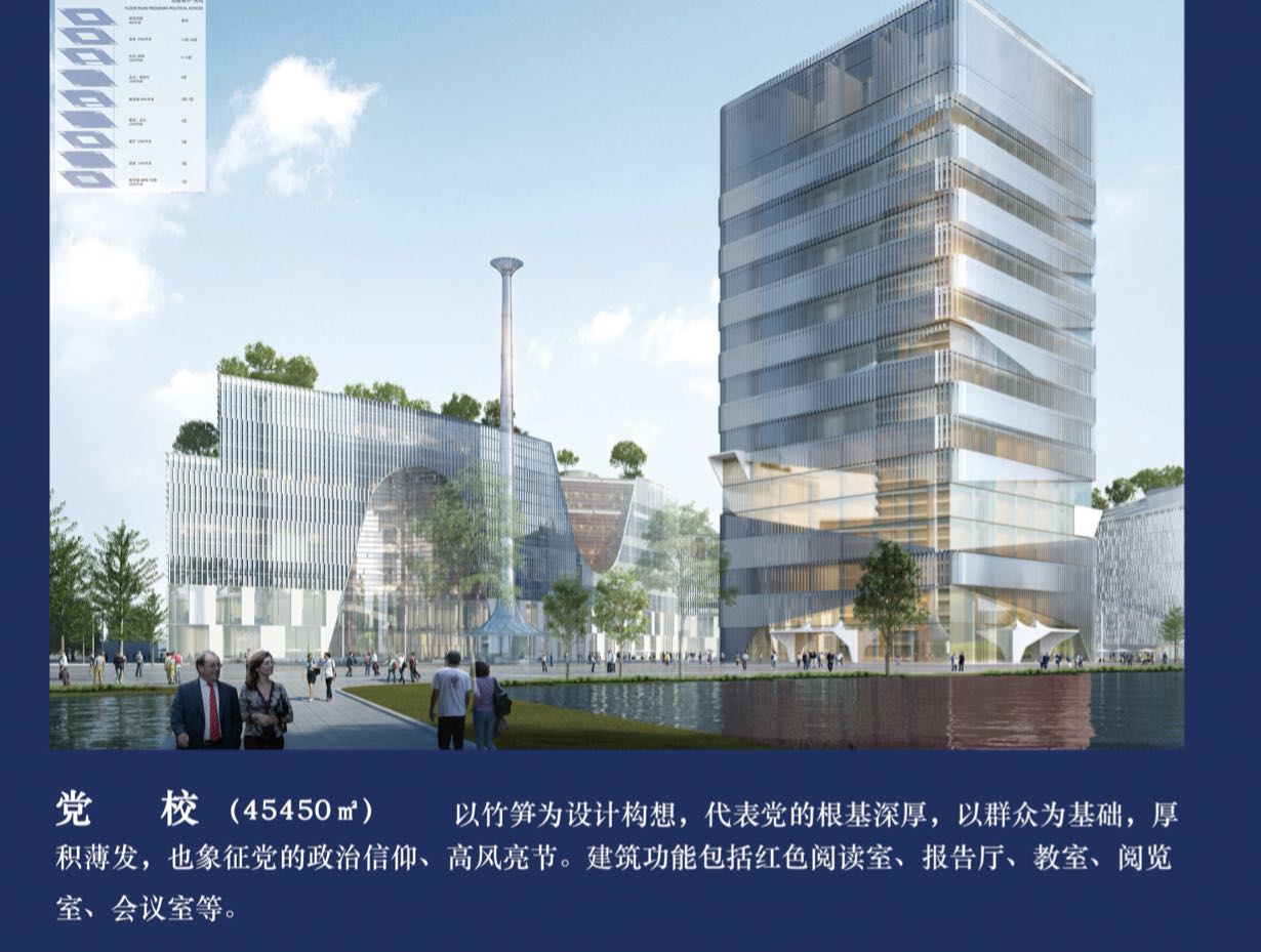 項目共設計4棟建筑,總建筑面積約17萬方,其中,黨校為方正的長方體造型,居于中心位置;其余場館分別形成3片綠葉造型圍繞在黨校周圍。4棟建筑組團集合形成了“光谷綠洲”造型,凸顯綠色環(huán)保、智慧高效的光谷人文特色。
