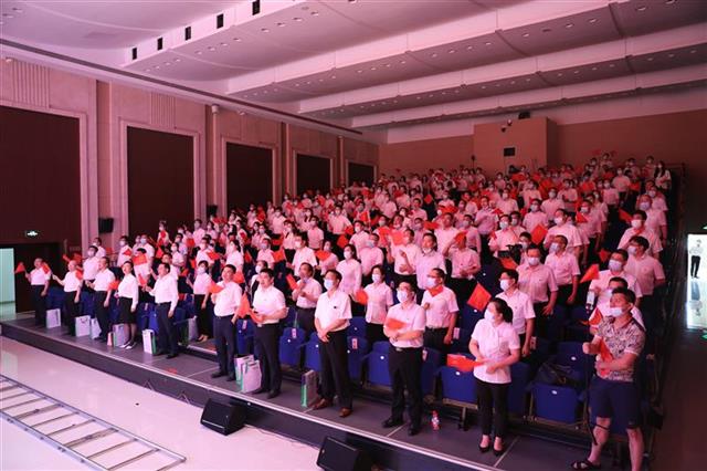 在“音樂黨課”上,省長投集團黨委書記、董事長何大春帶領全體黨員重溫入黨誓詞,并以《牢記誓詞跟黨走 譜寫長投新篇章》為題講授專題黨課,激勵大家踐行入黨誓詞,奮勇擔當、砥礪前行,凝聚起推動“一紅一綠”高質量發展的磅礴力量。
