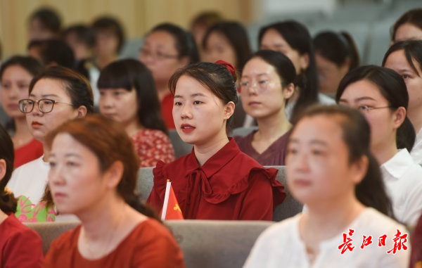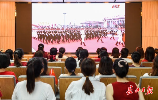 武昌實驗中學沙湖學校老師觀看慶祝中國共產(chǎn)黨成立100周年大會現(xiàn)場。記者 許魏巍 攝