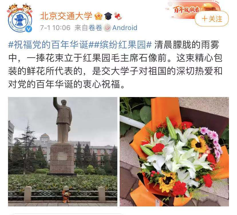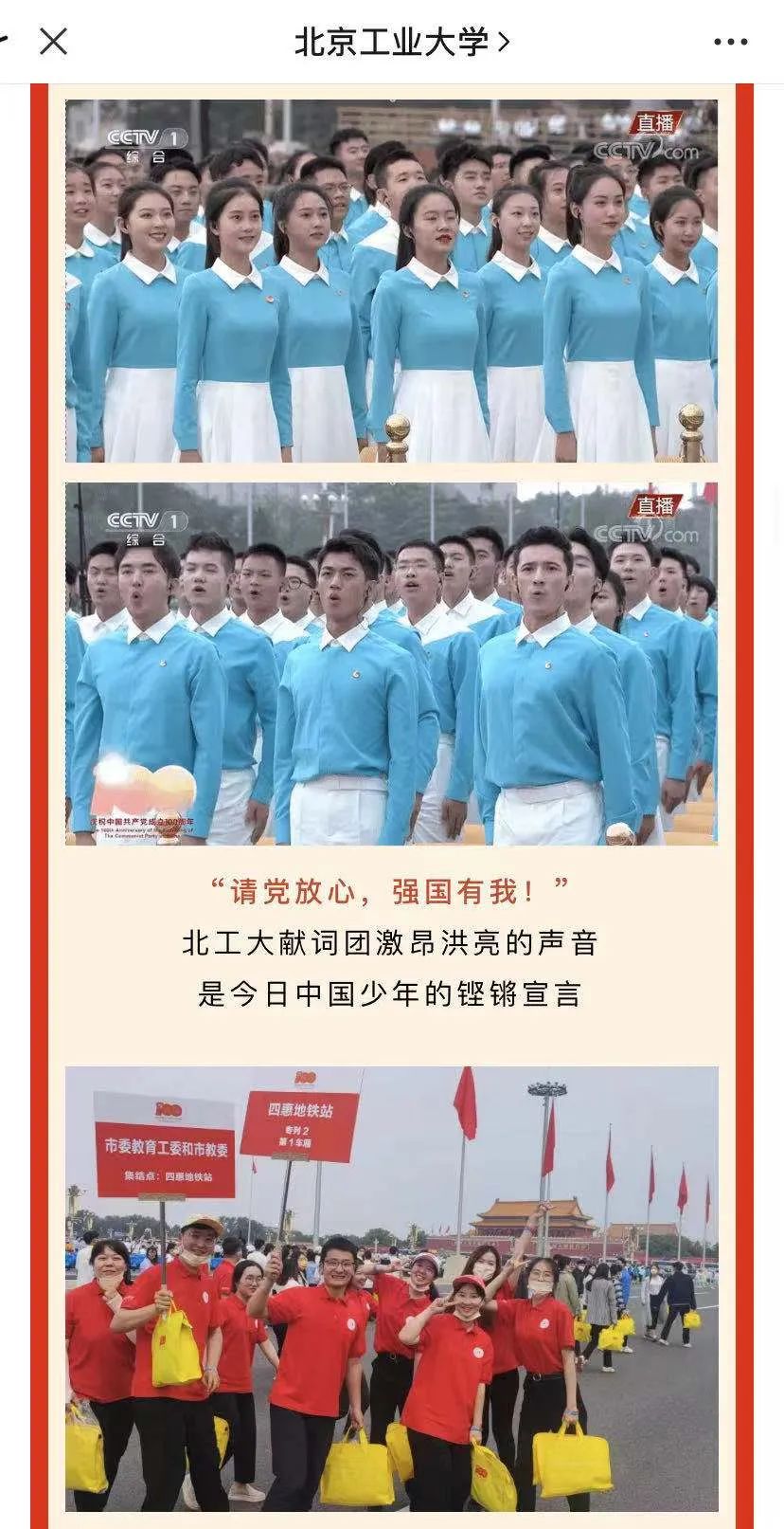 作為合唱團和獻詞團成員,百余名北京工業大學師生在天安門廣場,用高昂的歌聲與深情的獻詞,把最美的祝福送給黨!