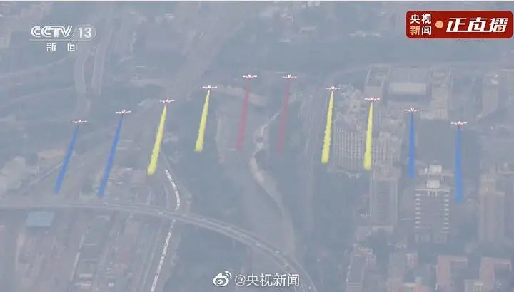 10道彩煙輝映長空,慶祝建黨百年!彩煙梯隊的成員,絕大部分來自空軍航空大學“紅鷹飛行表演隊”。