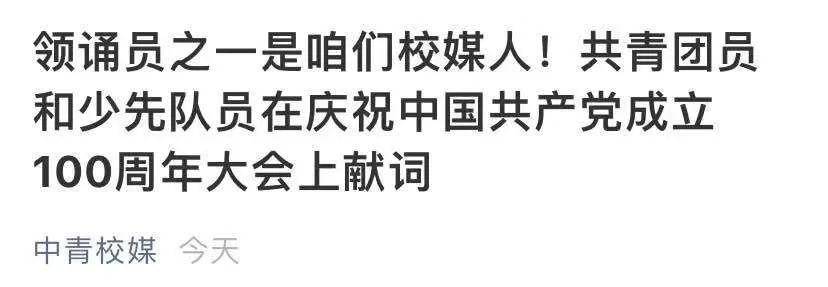 中央財經大學國際經濟與貿易學院的大四學生趙建銘,是慶祝中國共產黨成立100周年大會獻詞的領誦員之一。他還與中國青年報有深厚的緣分↓↓↓