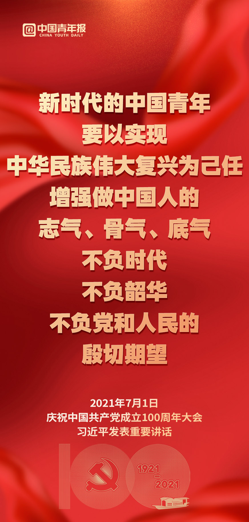 慶祝中國共產黨成立100周年大會上,總書記特別寄語青年說,未來屬于青年,希望寄予青年。