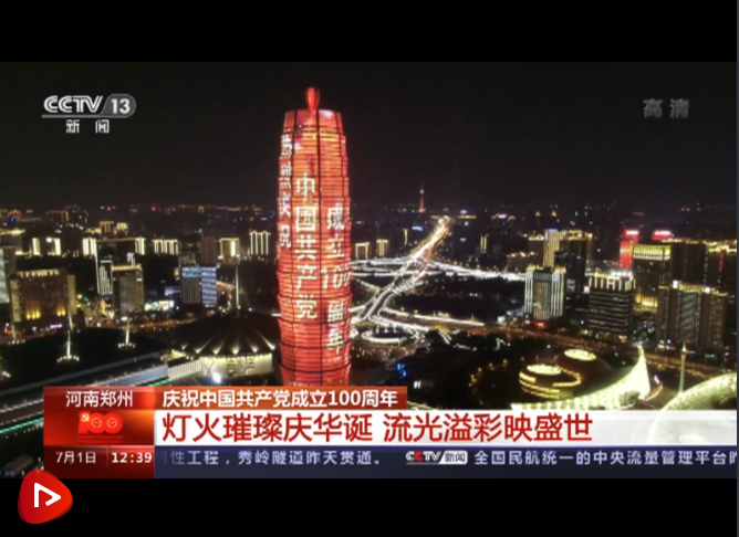 河南鄭州 慶祝中國共產黨成立100周年 燈火璀璨慶華誕 流光溢彩映盛世