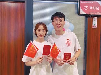 26歲的李明輝和王童是大學同學,兩人相識8年,相戀1年。兩人之所以選擇7月1日來領證,正是覺得這一天意義非凡。李明輝表示:“我大學入黨,黨齡7年,王童高中入黨,黨齡8年。520、521這樣的日子年年有,但今天不一樣,今天登記既能體現喜結百年同心的幸福,更能展現我們對黨的忠誠和熱愛。”