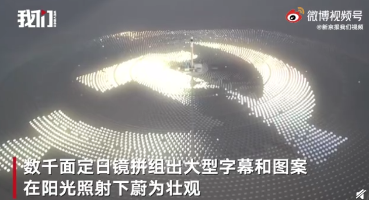 2、敦煌光熱電站的硬核百歲生日禮物 1日,甘肅敦煌熔鹽塔式光熱電站數(shù)千面定日鏡拼組出大型字幕和黨徽,在陽光照射下蔚為壯觀。工作人員通過智能化編程調(diào)動了占地約800公頃的鏡場,在瀚海戈壁上,向建黨100周年獻(xiàn)禮。(@新京報我們視頻)