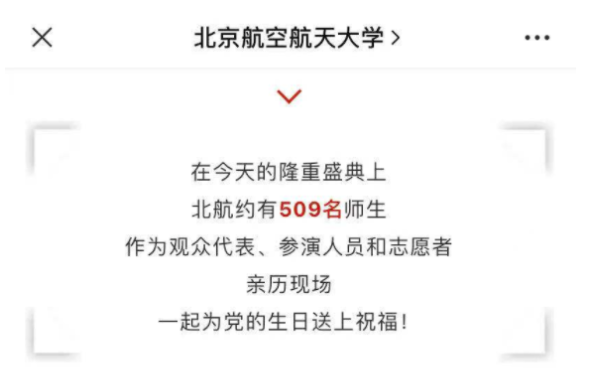 北京航空航天大學有500多名師生作為觀眾代表、參演人員和志愿者,親歷現場。其中,74名師生參加合唱,唱響最美的青春旋律。