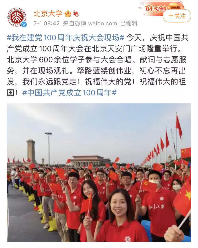 北京大學有600余位學子,參與大會合唱、獻詞與志愿服務。
